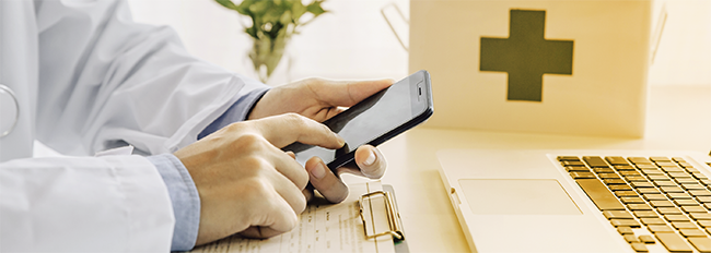 Arzt mit Mobiltelefon